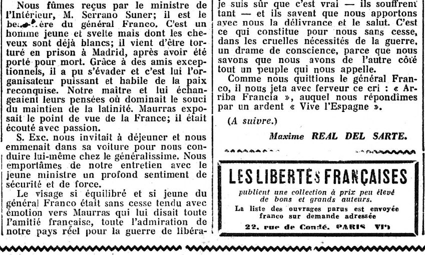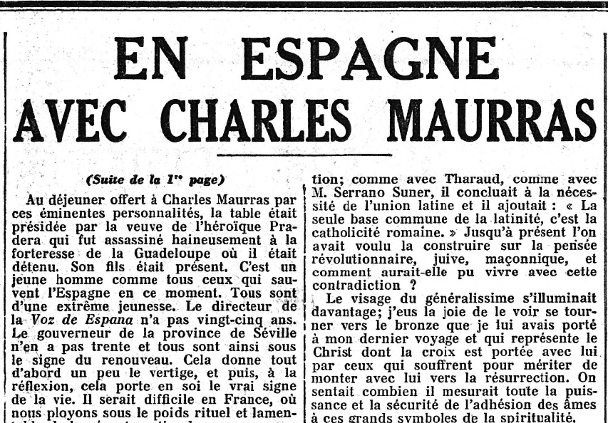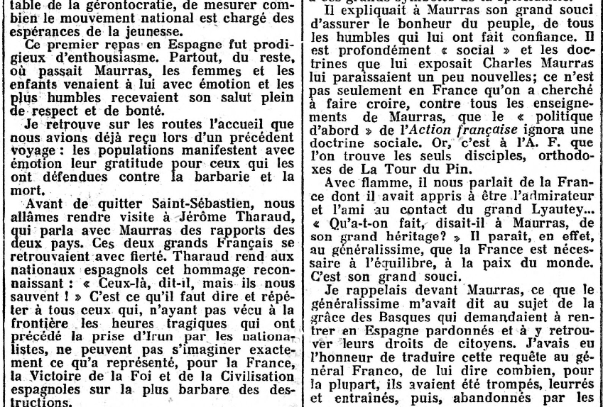 Grandes "Une" de L'Action française : Maurras est en Espagne, "chez Franco"... (5/5)
