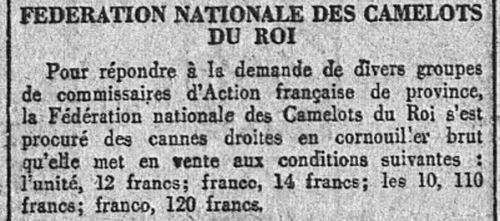 (Ce deuxième volet de cette "vie de l'Action française, vue de l'intérieur", est "en construction" : il concerne l'invention par L'AF de la Revue de Presse, les Congrès, les Almanachs de L'Action française, le nombre d'abonnés au journal, la structuration du mouvement en onze zones sur tout le territoire métropolitain (la onzième zone étant : l'Algérie !), les insignes du mouvement et d'autre sujets encore... Il est publié dès maintenant, et sera augmenté au fur et à mesure de l'avancée de notre lecture de la collection complète du quotidien... )