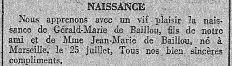 • et, dans le numéro du Dimanche 6 Juin 1926, rubrique "Naissances", page quatre, on lira :
