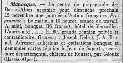 • L'Almanach d'Action française pour l'année 1928 raconte la même réunion de Barbentane... :