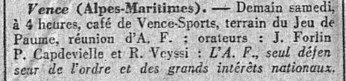 Voici donc ces informations, diverses et variées, glanées dans la rubrique "Ligue d'Action française", paraissant en page deux, trois ou quatre.