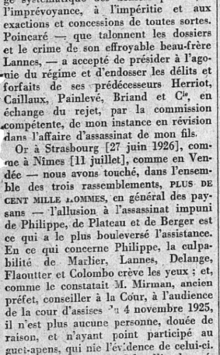 • Lors du XIIème Congrès d'Action française, en page deux du numéro du Vendredi 27 Novembre 1925, on a le rapport suivant... :
