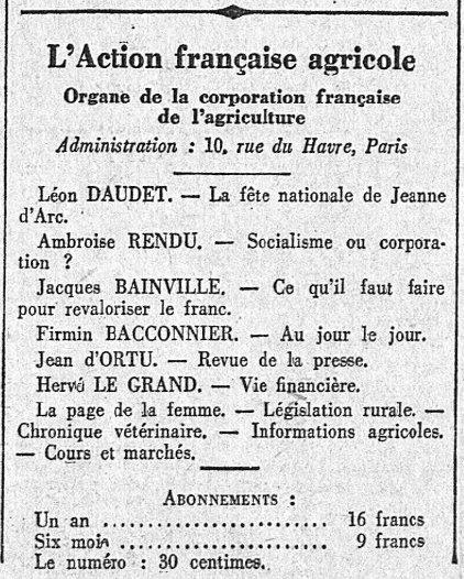 L'Action française agricole paraîtra jusqu'en Juillet 1931...