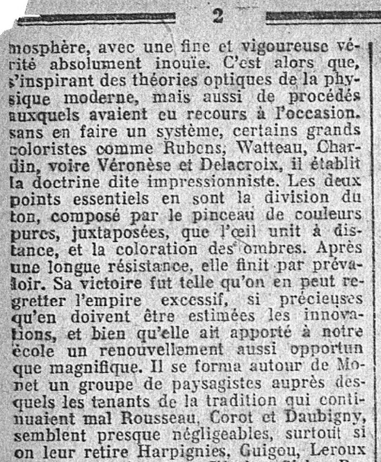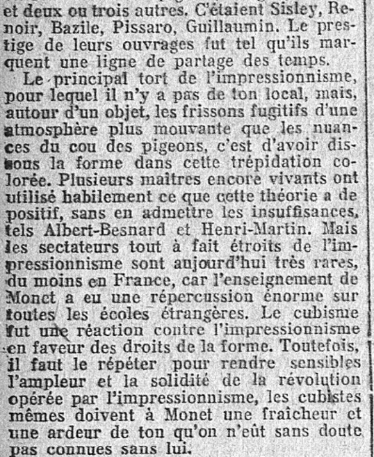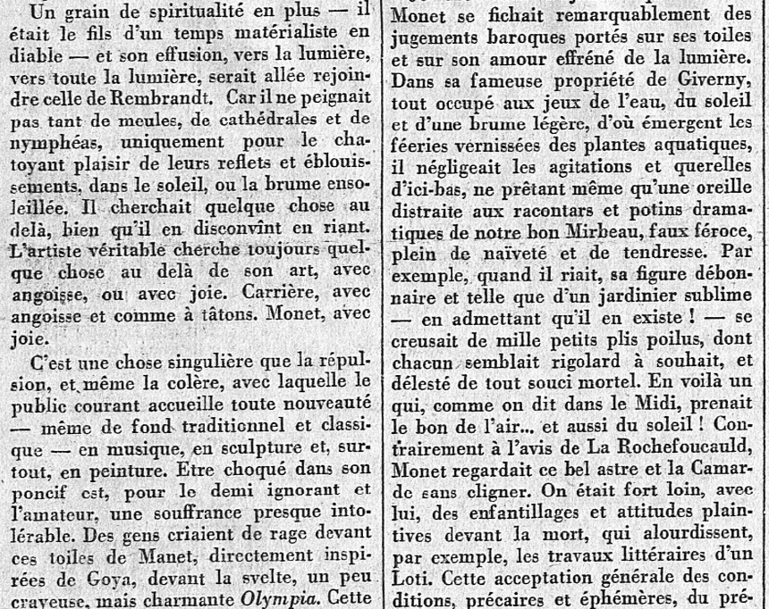 Grandes "Une" de L'Action française : "Monet, qui ajoute à l'univers...", par Léon Daudet