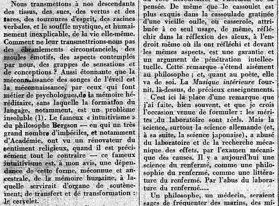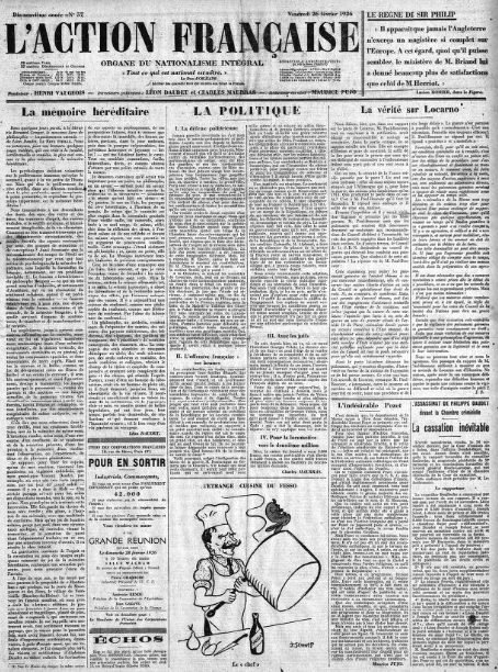 Grandes "Une" de L'Action française : "La mémoire héréditaire", par Léon Daudet...