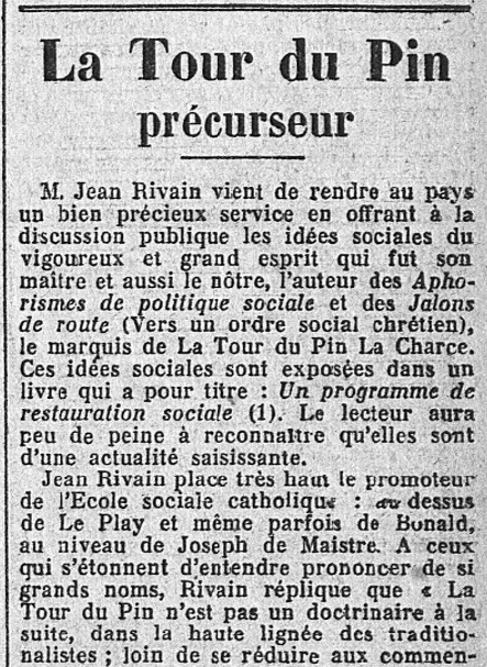 "Ce n'est pas La Tour du Pin qui est d'Action française, c'est l'Action française qui est de La Tour du Pin"...