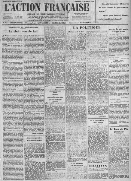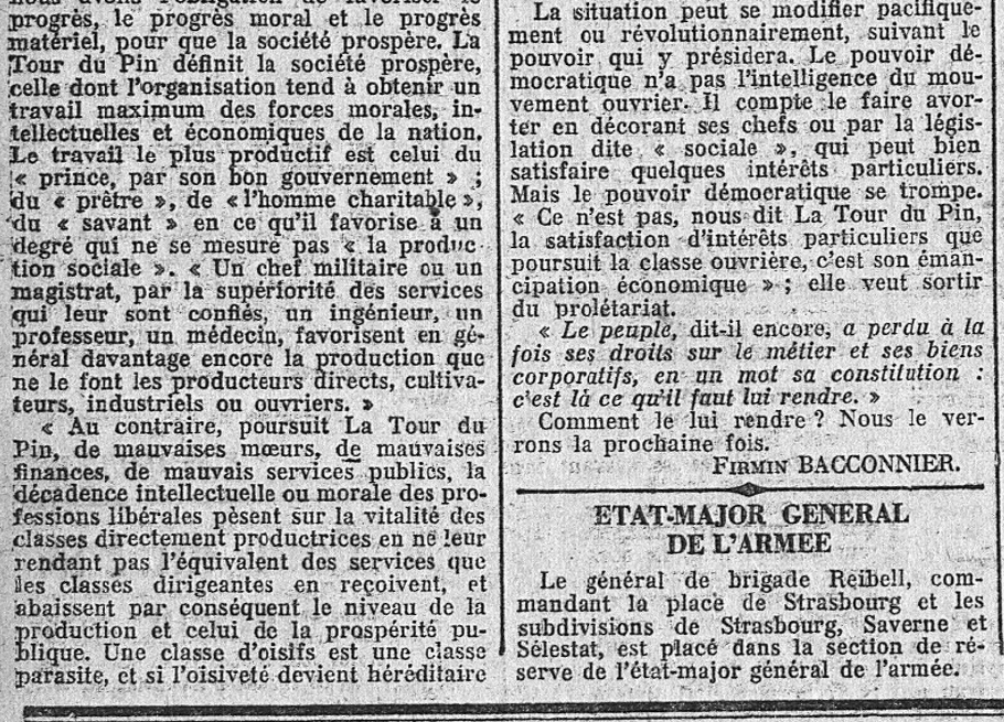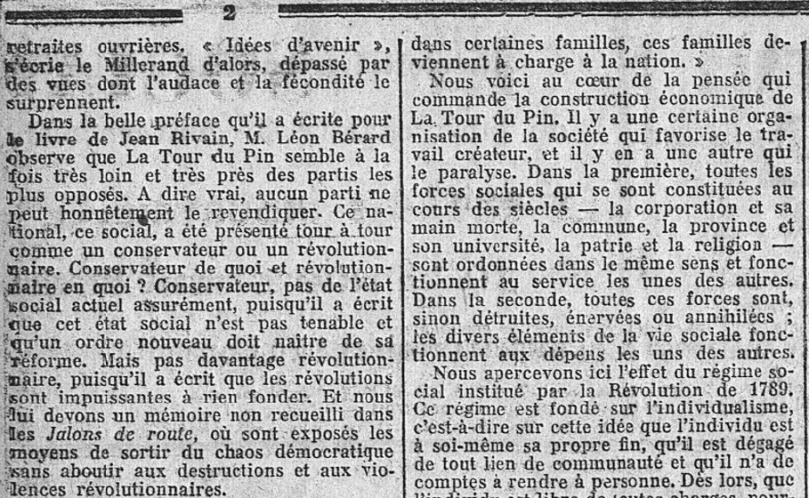 Grandes "Une" de L'Action française : La Tour du Pin précurseur, par Firmin Bacconnier (1/2)...