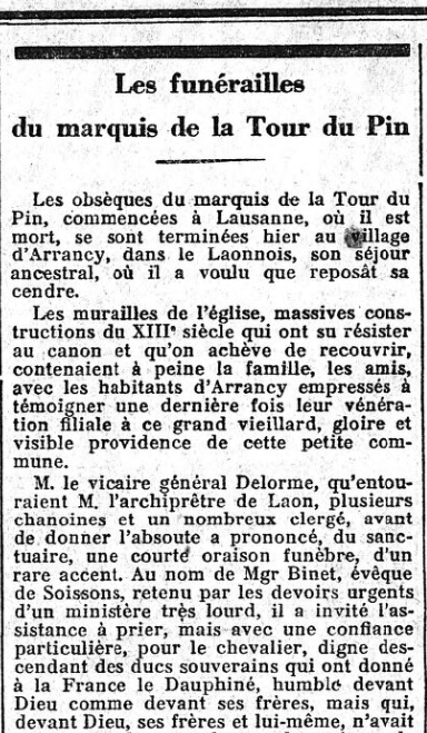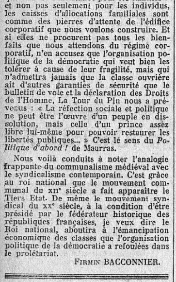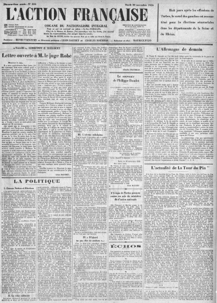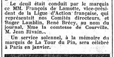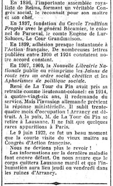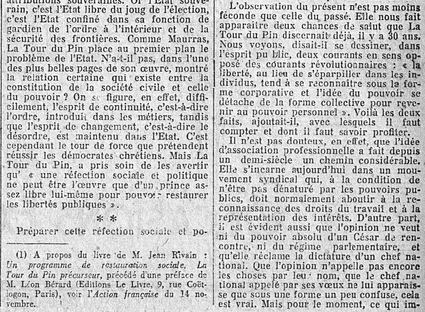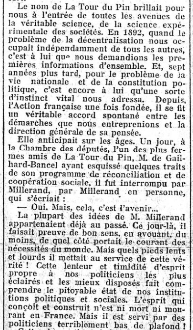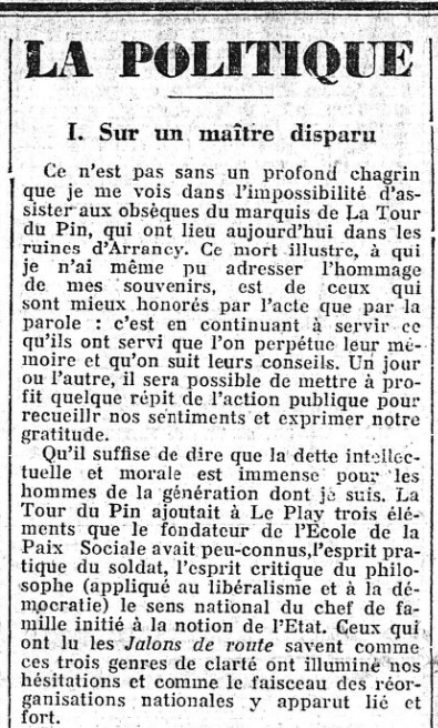 Grandes "Une" de L'Action française : L'actualité de La Tour du Pin, par Firmin Bacconnier... (2/2)