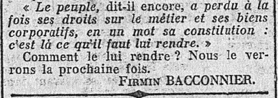Voici donc le lien conduisant à la "Une" du Mardi 30 Novembre 1926, dans lequel Firmin Bacconnier poursuit sa "présentation" de la pensée et de l'action de La Tour du Tin :