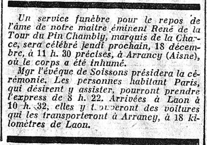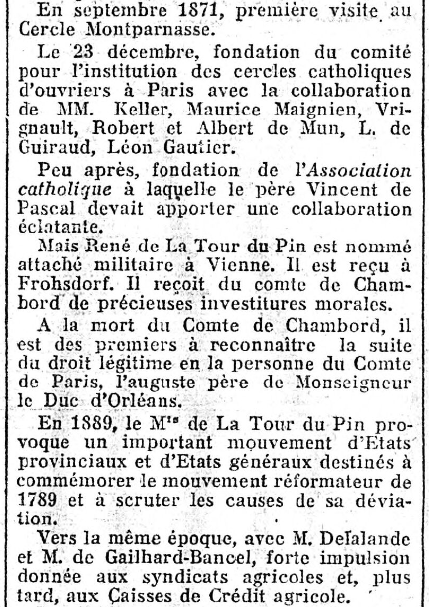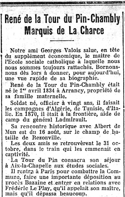 Né le premier Avril 1834, René de La Tour du Pin mourut le 4 Décembre 1924, à plus de quatre-vingt dix ans.