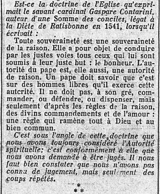 • la défection de Jacques Maritain : moins cataclysmique que la scission d'avec Georges Valois, cette défection malheureuse, après un engagement à nos côtés de Maritain, n'en aura pas moins des conséquences négatives et regrettables pour le mouvement...