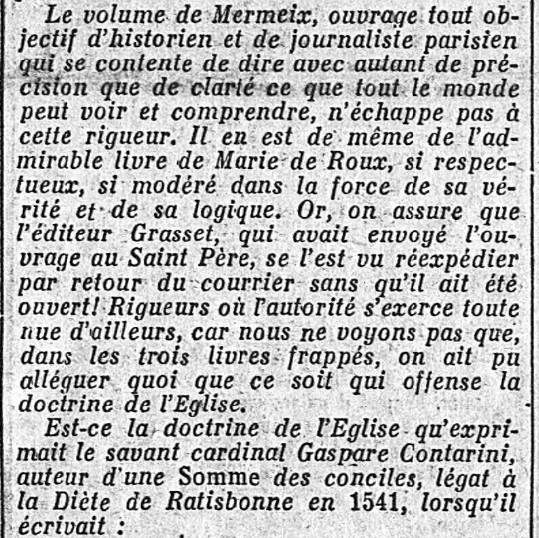 • la "Une" du numéro du Samedi 24 contient encore plus de deux colonnes sur la démission du Cardinal Billot...