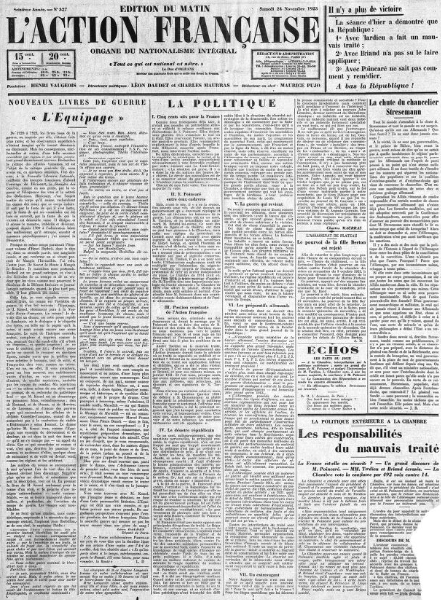 (retrouvez notre sélection de "Une" dans notre Catégorie "Grandes "Une" de L'Action française")
