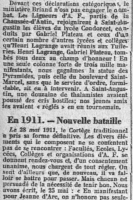 Grandes "Une" de L'Action française : Maurice Pujo raconte les origines du Cortège de Jeanne d'Arc, le dur combat des Camelots pendant des années et leurs 10.000 jours de prison pour IMPOSER le Cortège. Ils ont réussi !