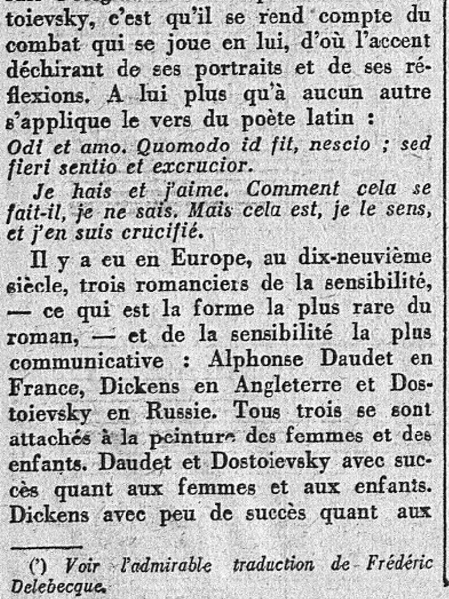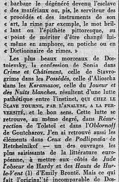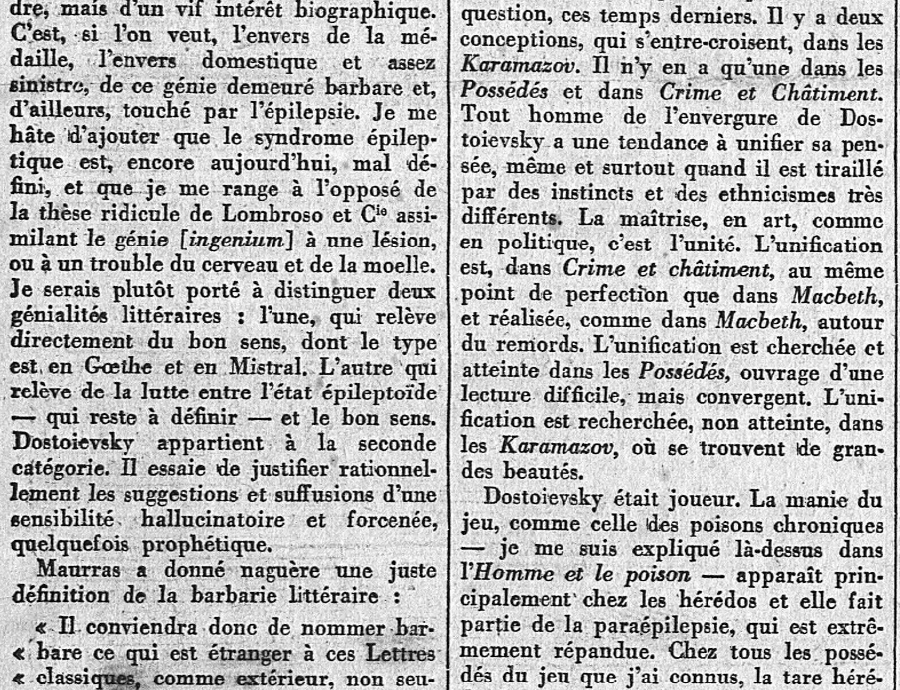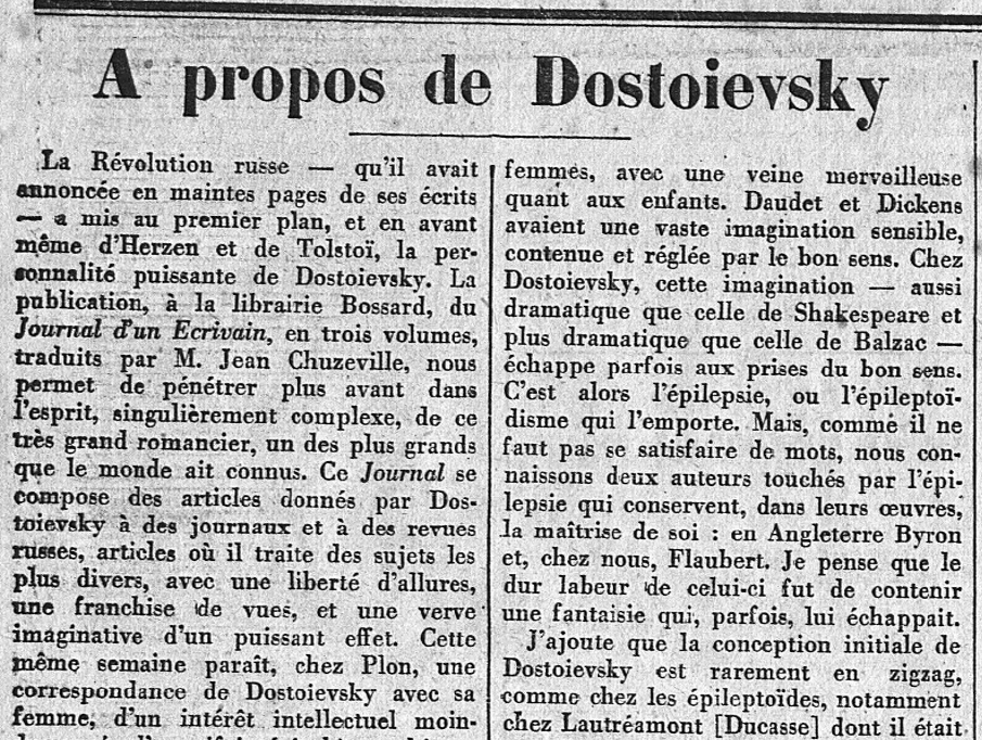 C'est la parution du Journal d'un écrivain qui fournit à Daudet, en ce mois d'Octobre 1927, l'occasion de se pencher sur cette "personnalité puissante" que fut Dostoievsky, et sur