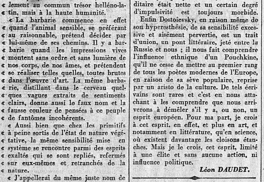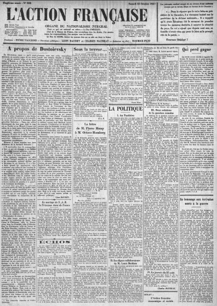 Grandes "Une" de L'Action française : À propos de Dostoievsky, par Léon Daudet...