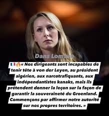 "Nos dirigeants sont incapables de tenir tête à von der Leyen, au président algérien, aux narcotrafiquants, aux indépendantistes kanaks, mais ils prétendent donner la leçon sur la façon de garantir la souveraineté du Groenland. Commençons par affirmer notre autorité sur nos propres territoires..."