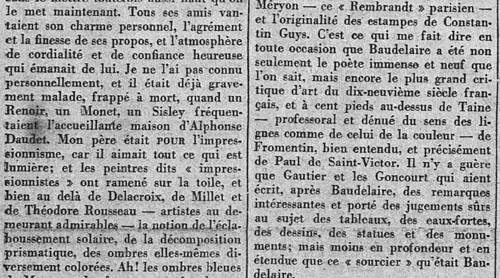 Si "le ton" de l'article est déjà donné, ici - pour ce qui concerne l'admiration qu'il portait à Degas - comme très souvent, chez Daudet, on a un feu d'artifice, dans lequel tout part dans tous les sens, mais pour le meilleur bien entendu, et pour la plus grande joie du lecteur, pour son élévation incessante et toujours renouvelé...