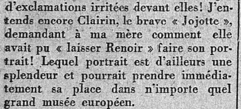 Daudet va donc parler, à propos de Degas, d'un chef d'oeuvre peint par Renoir : le portrait de Julia Daudet, sa propre mère.