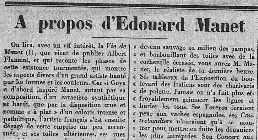 Grandes "Une" de L'Action française : Édouard Manet, "un grand artiste tourmenté par les formes et les couleurs", par Léon Daudet...