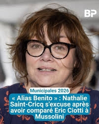 3. Nathalie Saint-Cricq, une militante gauchiste déguisée en journaliste (pardon : journaleuse !) : à virer, d'urgence ! Écoutez bien, à la fin de ces douze secondes, car elle le murmure, son micro étant resté ouvert; on parle d'Éric Ciotti, elle dit "alias Benito"... Et elle est payée par TOUS les Français !