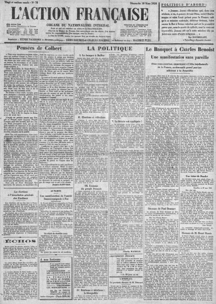 Grandes "Une" de L'Action française : Des "pensées de Colbert", reprises par Bainville, pour servir à notre relèvement, aujourd'hui... (par Jacques Bainville)
