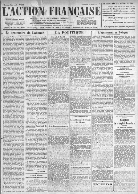 3. Ses Grandes "Une" de L'Action française et ses Documents pour servir à une Histoire de l'URP : une autre façon d'écrire et faire connaître l'histoire du mouvement royaliste...
