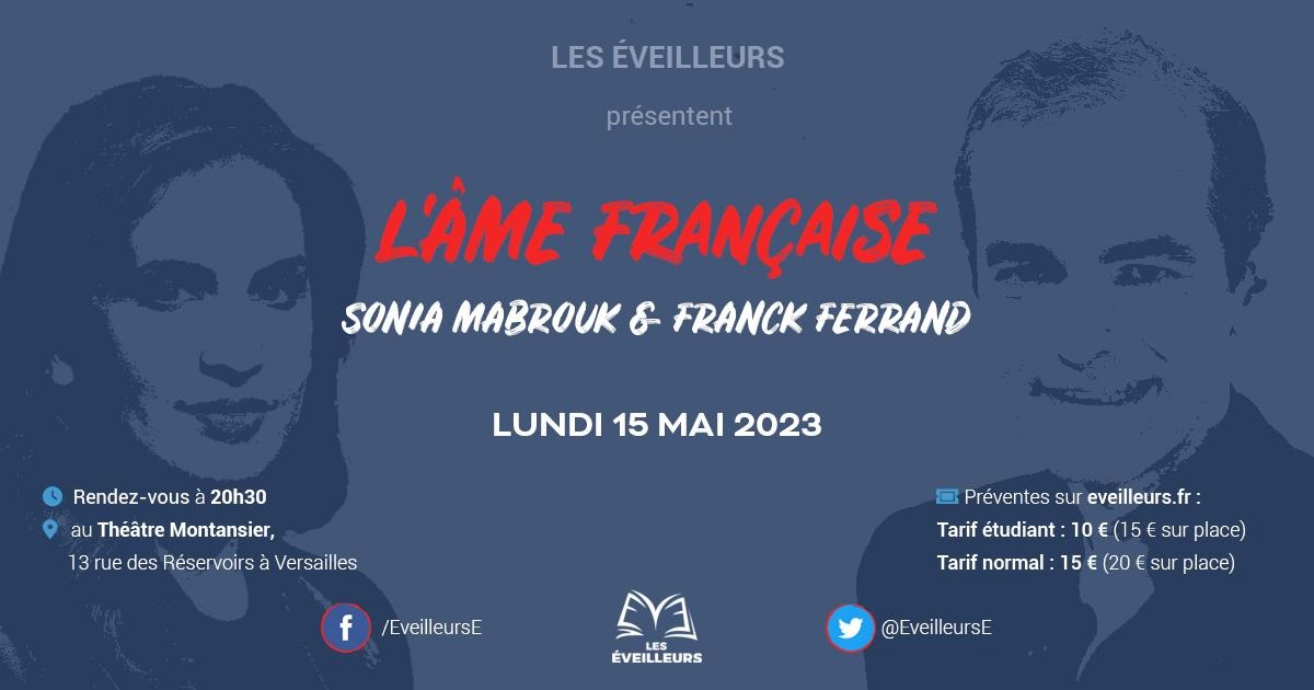 La conférence exceptionnelle qui se tiendra avec Sonia MABROUK et Franck FERRAND lundi 15 mai au théâtre Montansier ne pourra accueillir tout le monde !