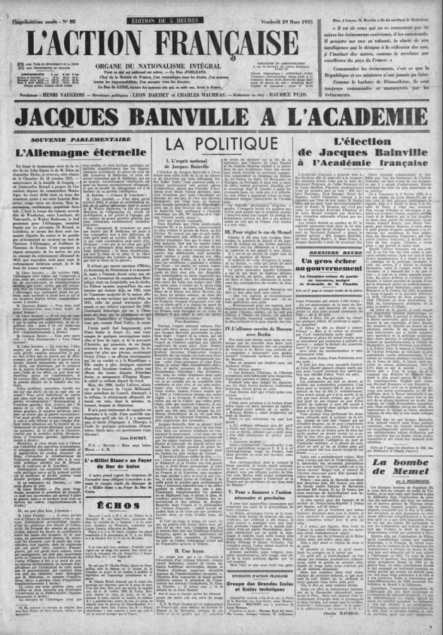Dans le "Fonds lafautearousseau", découvrez... : 2. Nos "Grandes "Une" de L'Action française..."