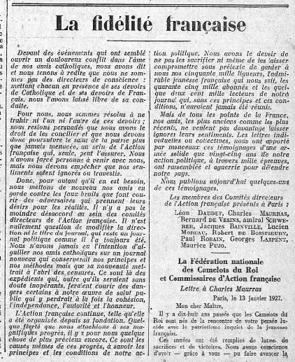 Ainsi, les Daudet, du premier au dernier numéro (le premier avec Léon, le dernier avec son fils François) ont-ils participé à la grande et magnifique aventure de L'Action française, de ceux qui ont tout fait, tout ce qui était en leur possible, pour servir la France et lui éviter les désastres que lui infligeait la République...