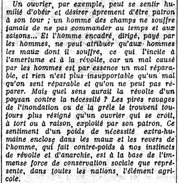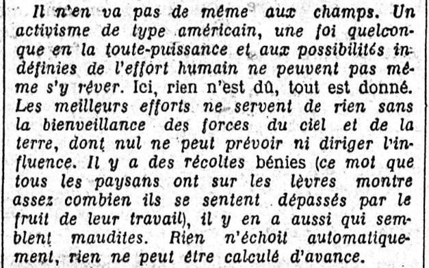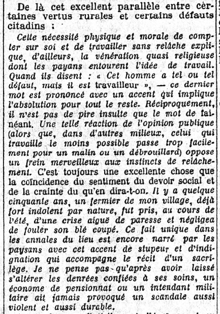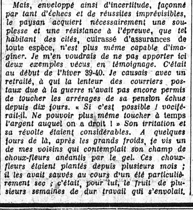 Et c'est donc le lendemain, jeudi 11 juin, que paraît la seconde partie de cette "présentation" au lecteur de Thibon : toujours dans la "Politique", qui cette fois n'a que trois paragraphes, le dernier étant à nouveau consacré à Thibon, avec le même titre, mais bizarrement "numéroté quatre" : "IV. Le réalisme de la terre"...
